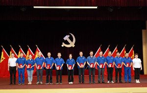 黨委委員、總經(jīng)理助理龍春梅帶領(lǐng)23名新黨員莊嚴(yán)宣誓